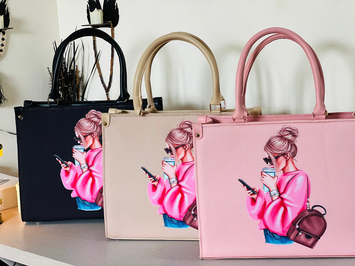 The Mug Girl Coffee Shop Tote by Sovana Lane is the perfect blend of style and functionality. Carry your coffee in elegance.